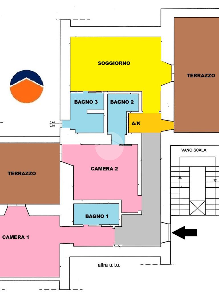 L'immobile, si presenta finemente ristrutturato ed attualmente viene utilizzato come affittacamere, è composto da un ingresso che apre su corridoio, tre camere con bagno in suite e per completare due terrazzi abitabili con tettoia.